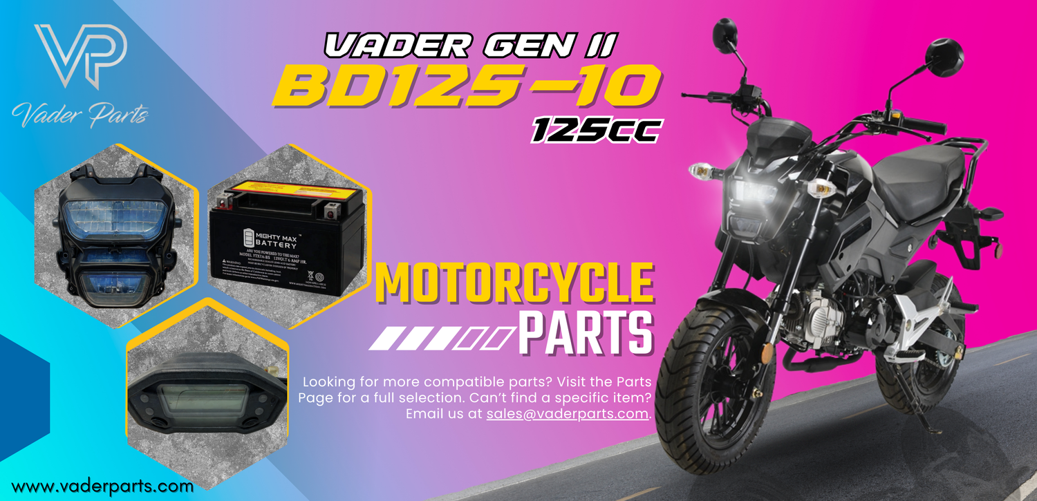As we continue to expand our inventory, some parts may not yet be listed on our website. If you're unable to find what you're looking for, please don't hesitate to contact us atΒ Sales@vaderparts.com. Our dedicated team is here to help you find the right parts for your motorcycle or scooter.